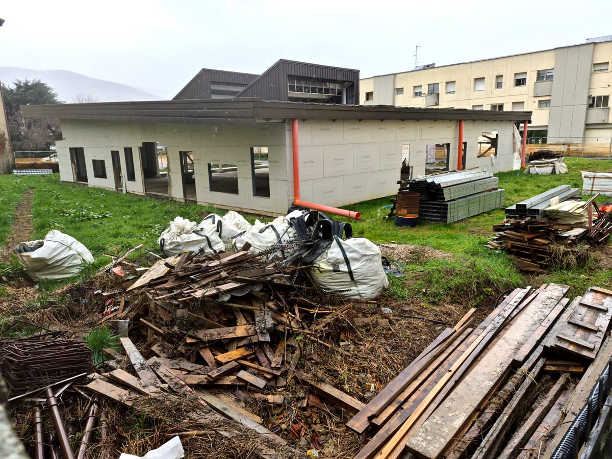 A Novembre 2025 la Giunta ha effettivamente approvato la variante in corso d’opera, eppure lo stato dei lavori è sotto gli occhi di tutti: a oggi risultano realizzate le fondazioni, la struttura portante e il tetto. Mancano ancora le pareti esterne e una parte consistente delle opere necessarie a rendere l’edificio effettivamente utilizzabile. E il cantiere continua a essere fermo.